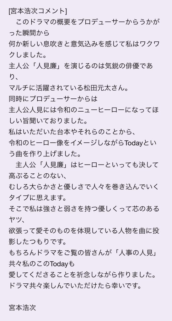 もし宮本さんの新曲となにかリンクするものがあったら、